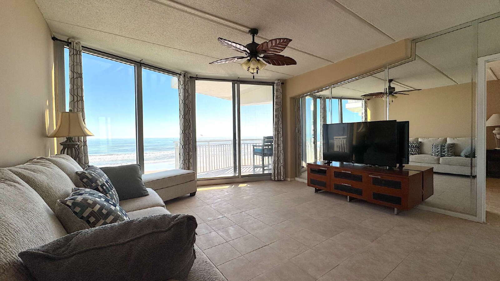 Enjoy coastal living year-round in this beautifully appointed 2-bedroom, 2-bath oceanfront condo in Daytona Beach, available for a 1-year lease. Perfectly positioned to capture breathtaking views of the Atlantic, this residence features a private balcony where you can relax and take in stunning sunrises and soothing ocean breezes. The spacious interior offers a bright and open living and dining area, well-sized bedrooms, and two full bathrooms for comfort and convenience. A rare bonus for beachfront living, the unit also includes a private 1-car garage, providing secure parking and additional storage. Ideal for those seeking beachfront lifestyle, this condo offers the perfect blend of comfort, convenience, and stunning oceanfront views, with easy access to local dining, shopping, and entertainment.